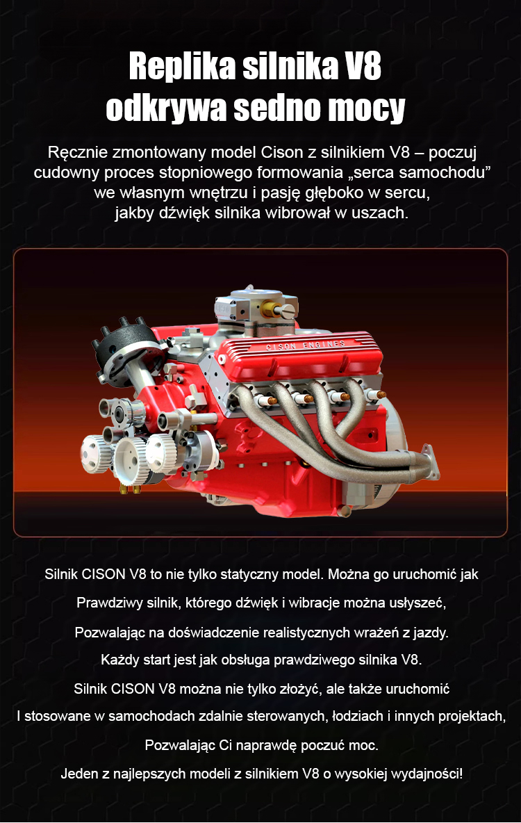 🔥Wyposażony w układ zapłonowy CDI i autentyczny, charakterystyczny dźwięk silnika V8.