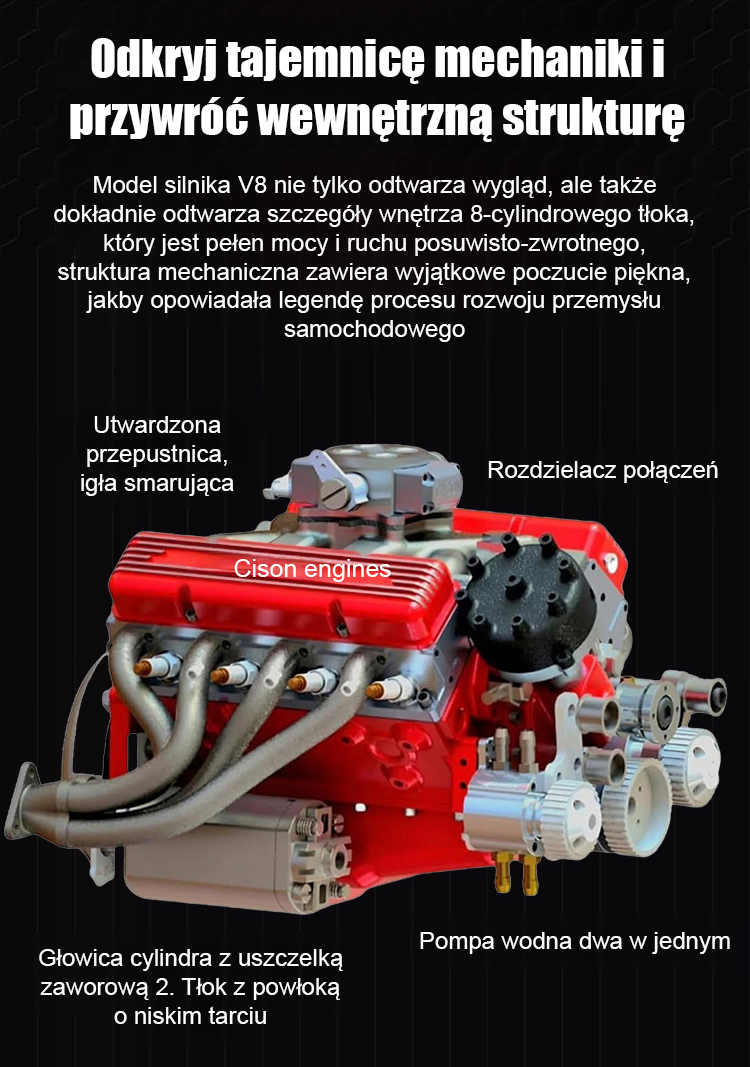 【100% funkcjonalna replika】Precyzyjne wykonanie CNC, napęd benzynowy, pełna funkcjonalność: zupełnie nowy model silnika V8!